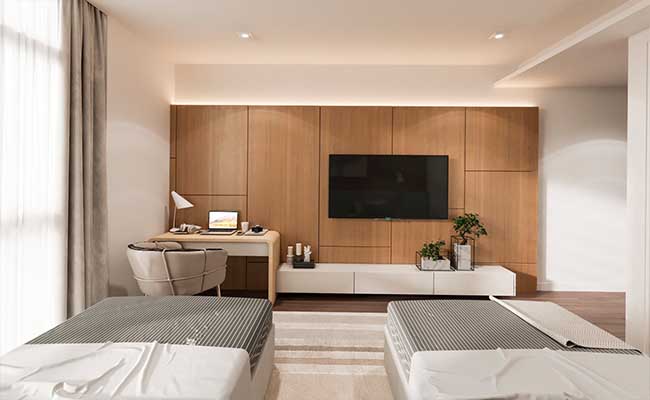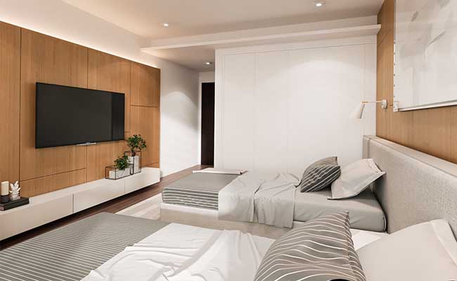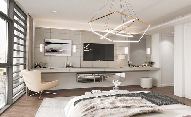 Perfect lighting for perfect hotel interior design in Dubai can be a great tool to make spaces seem larger than they are. Light-colored walls blend with warm lights can generate the feeling of inviting and alluring space. You can choose a soft and neutral color for walls in your hotel rooms & Apartment interior. Even the color of mattresses and bedding matter. Therefore, go for beige, grey, or creamy white colors.